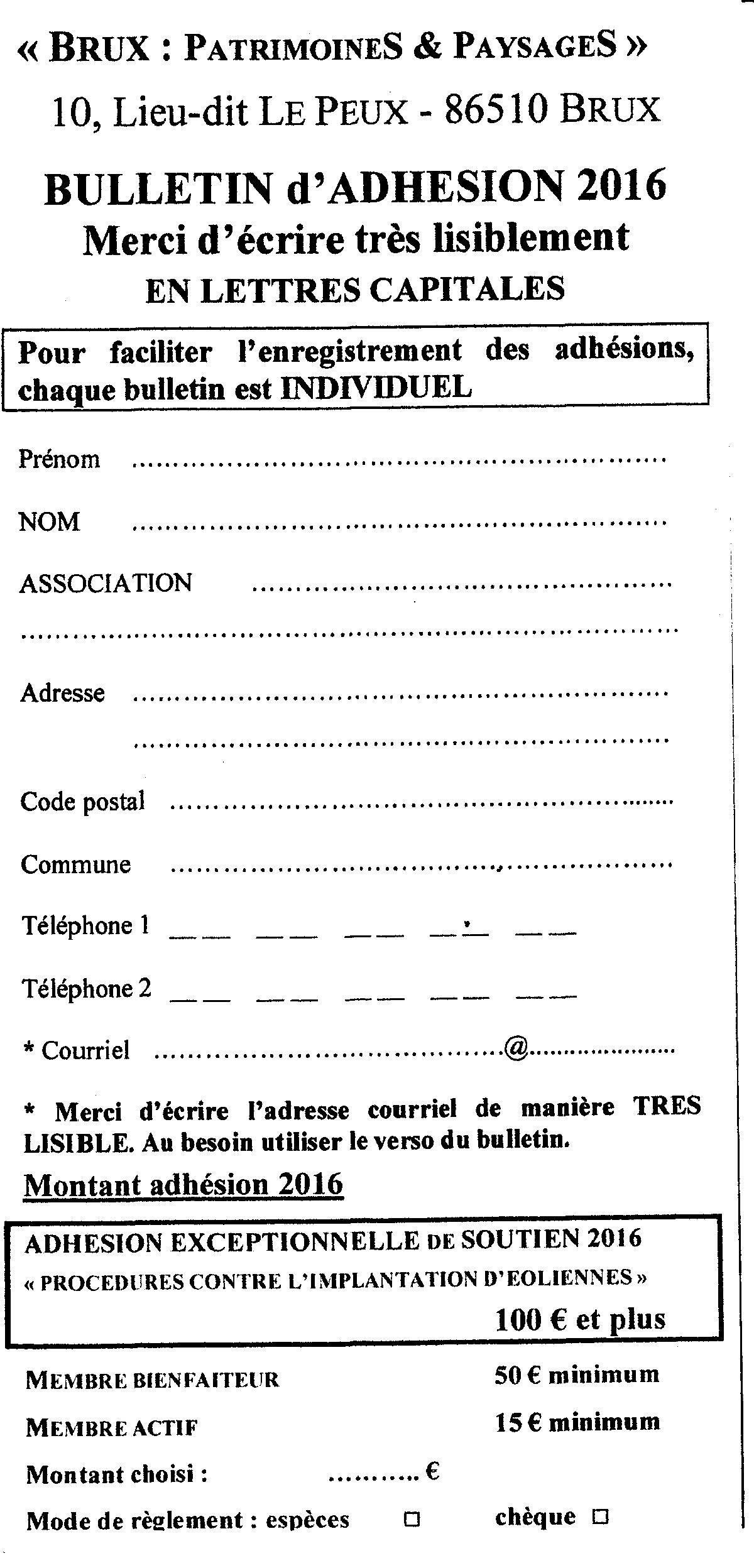 Le Bulletin d'Adhésion sera remplacé par un formulaire Internet avec base de